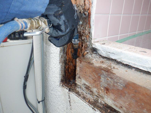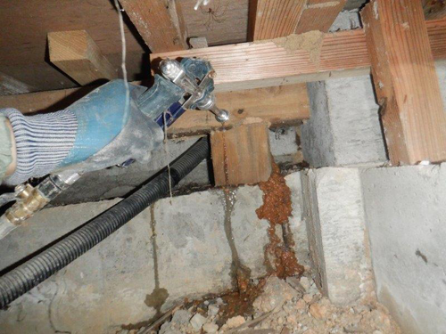 あらかじめ台所などの水廻り床下にパイプを這わせ床下に潜らずとも薬剤散布が可能です。