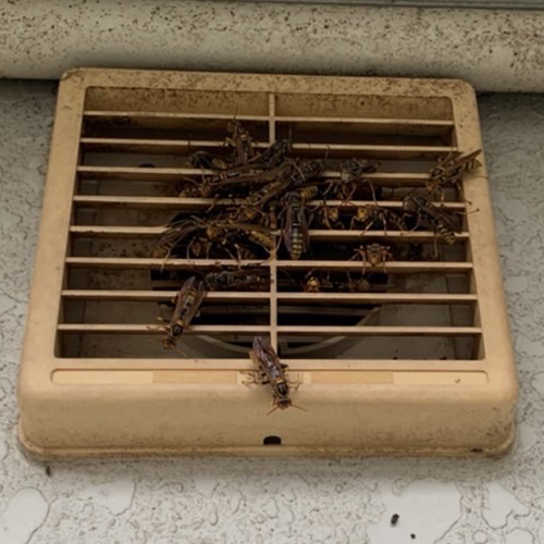 ※写真は排気口に溜まるアシナガバチ