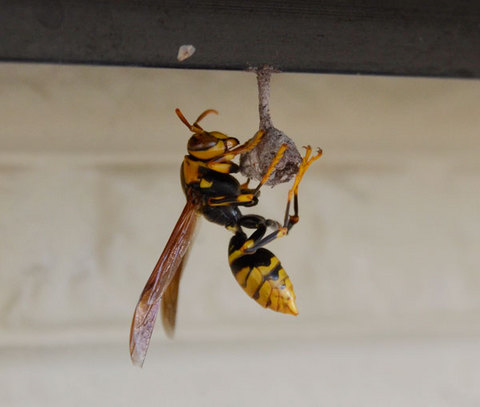 11月頃は、アシナガバチの女王蜂が越冬場所を探して洗濯物に紛れ込むことがあります。